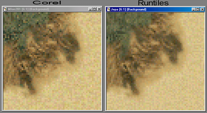 the corel version seems a bit darker and slightly more contrast..as were the runtiles vrsion looks smoother...